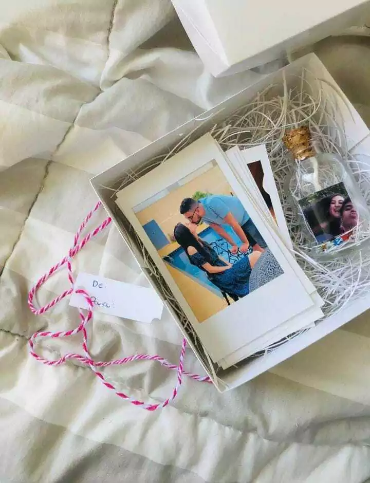 Vai 1 caixinha + 10 fotos revelada + 1 potinho com foto - podendo enviar um textinho pra colocar uma cartinha também | clique nos 3 pontinhos ao lado da foto no drive e va em renomear e coloque o textinho desejado